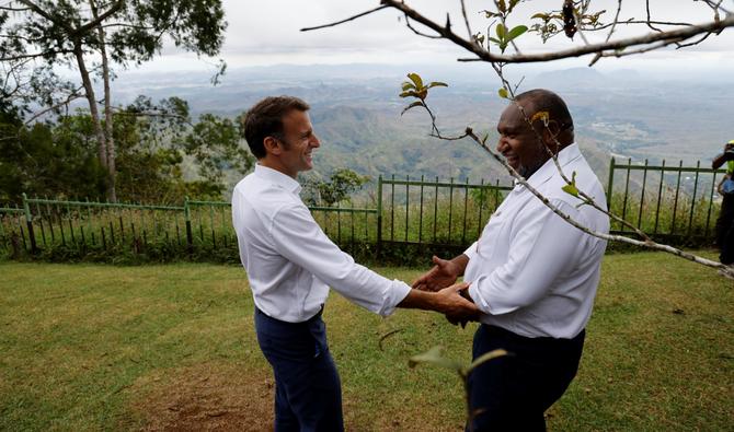 Dans le parc national de Varirata, près de Port-Moresby, la capitale de cet Etat insulaire d’Océanie, le président français s’avance accompagné du Premier ministre papouasien James Marape, tombe la veste puis la cravate.